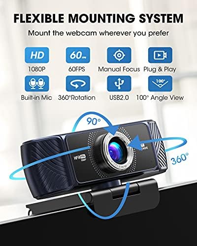 - 【Diseño innovador】A diferencia de la mayoría de las clips de cámara web que solo giran 90°, la placa de cámara web 682H puede girar libremente 360°. Puedes ajustar los ángulos de visión como desees. El clip universal preparado para trípode se adapta a todas las computadoras, laptops, Mac, LCD o monitores. (No incluye trípode)