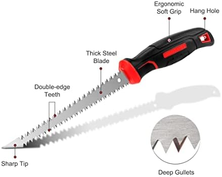 - SHARP TIP FOR PLUNGE CUTS - Specially designed sharp tip with an oblique angle for easy cutting into a drywall or sheetrock, improving your efficiency greatly; teeth boast smooth, sharp, aggressive and quicker fine cuts in push and pull strokes; deep gullets for clearance and adds stability during cutting
