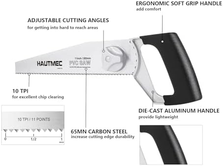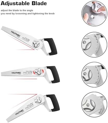 Sierra para tubos de PVC/ABS HAUTMEC de 11 pulgadas y sierra manual de uso general, ángulo de corte ajustable, para cortar tubos en espacios reducidos, para recortar, jardinería, madera, paneles de yeso y plástico HT0027-SA