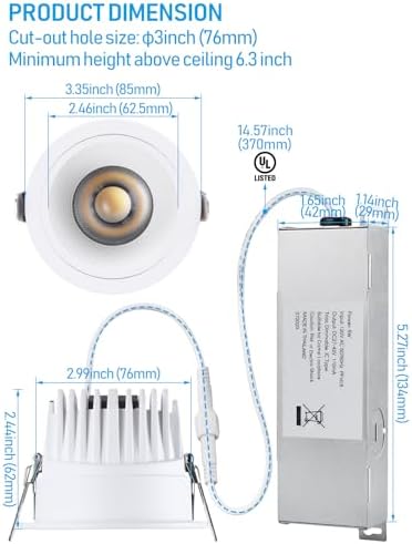 - High Brightness: The dimmable 3 inch recessed led lights offers a bright illumination of 700lm and a high CRI90. This ensures accurate color representation, making it perfect for tasks requiring precise color discrimination
