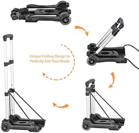 Hivexagon Folding Luggage Cart 88lbs Load Capacity Compact Lightweight and Durable Aluminum Alloy Travel Trolley for Luggage, Personal, Travel, Moving and Office Use