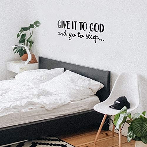Calcomanía de vinilo para pared, Give It to God and Go to Sleep, 11 x 31 pulgadas, calcomanía moderna e inspiradora con cita religiosa para decoración del hogar, oficina, recámara, sala de estar, aula (negro)