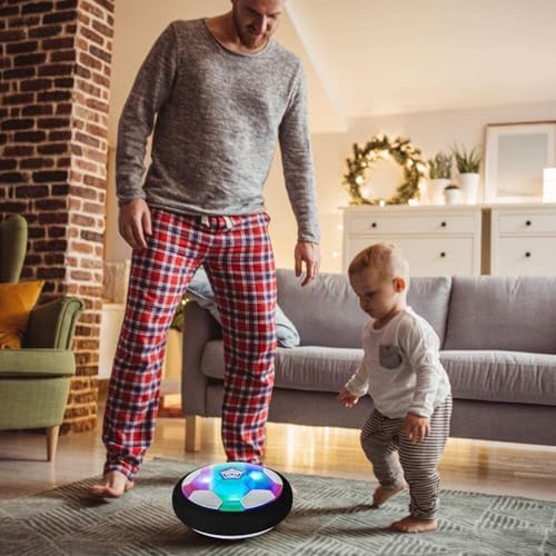 - ⚽[Colorful Light & Modest Size] It has colored light on ball surface with button, kids can play and kick after the nightfall and turns soccer games into a dazzling light display show which brings more fun to the kids, making your night game wonderful. You can play it like a real soccer ball, not just a toy. What's more, our hover soccer size is 7 inches, neither too big nor too little, suitable for ages up 2 years children and multiplayer game.