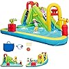 - 【Multiple Safety Protection】 Safety is top priority. The heightened guardrails of the slides further enhance security. At the bottom of the climbing wall, an inflatable buffer zone is provided; When the child reaches the top of the climbing wall, a visual breathable mesh wall is placed for great protection that allows parents to observe kids' movement at any time. The 7 ground stakes are committed to ensuring stability and firmness.