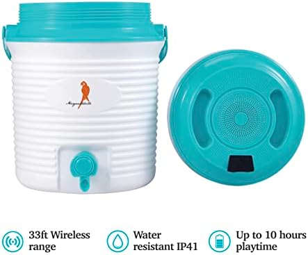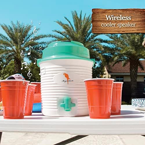 - FUN SUMMER COOLER: Need a replacement for lugging around ice packs or cramming your drinks to a tiny can cooler? The Margaritaville waterproof speaker provides a great water cooler and tap topped with a fun portable bluetooth speaker that can keep any party going! Simply pour the drinks and jam out to the bluetooth stereo party speakers. The easy bluetooth pairing allows any wireless phone to connect fast and keep the music bumping!