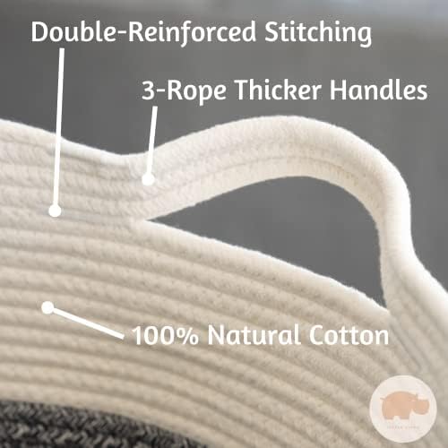 - ✅DOUBLE-REINFORCED & MADE FROM NATURAL COTTON – Inferior laundry baskets are made with thin, weak stitching and fall apart over time – but not ours! Each super-durable clothes hamper features thick, double stitching around the handles to prevent ripping and keep its shape (say goodbye to sad, deflated rope baskets). Even better? Our beautiful baby basket is made from 100% natural cotton, so you’ll never have to worry about your family’s safety or unpleasant chemical smells!