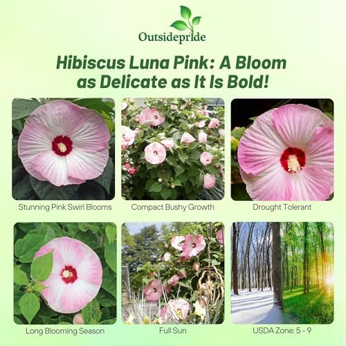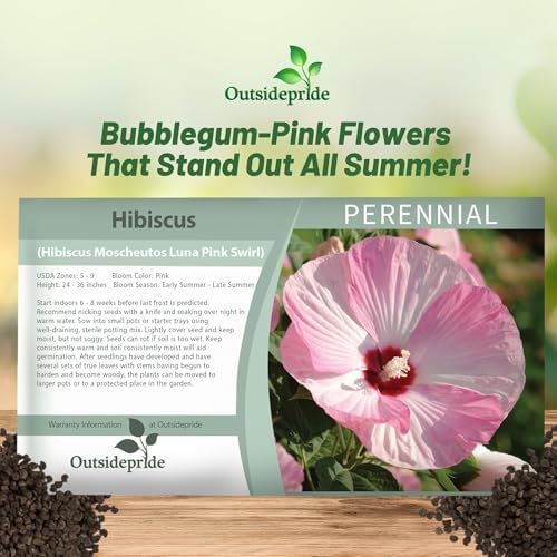 Outsidepride Luna Pink Swirl Hibiscus Seeds - 20 Pcs Perennial Flower Seeds for Planting Pollinator-Friendly, Large & Elegant Blooms with Dense Dark Green Foliage for Containers, Pots, & Garden Spaces