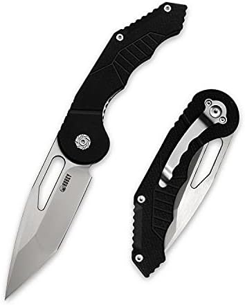 KUBEY KU217 8.9" Camping Folding Knife, One-Handed Gentleman's Knife with Tanto Blade N690 Steel and G10 Handle with SS Belt Clip for Hunting Survival and Tactical (Black)