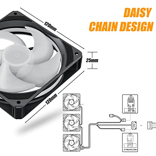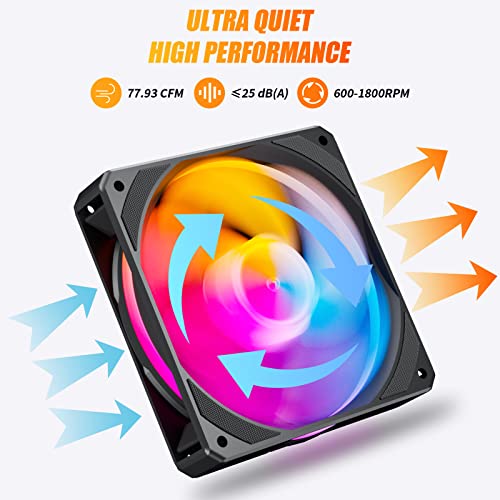 upHere 120mm Computer Case Fan Rainbow LED Silent Fan for Computer Cases, CPU Coolers,Water Cooler and Radiators Ultra Quiet,3 Pack Colorful Case Fan(F03CF)