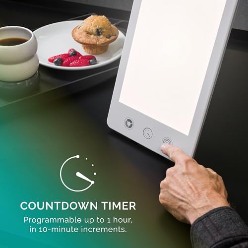 Verilux HappyLight Luxe - Light Therapy Lamp with 10,000 Lux, UV-Free, LED Bright White Light with Adjustable Brightness, Color, Countdown Timer, & Stand - Boost Mood, Sleep, Focus (White)