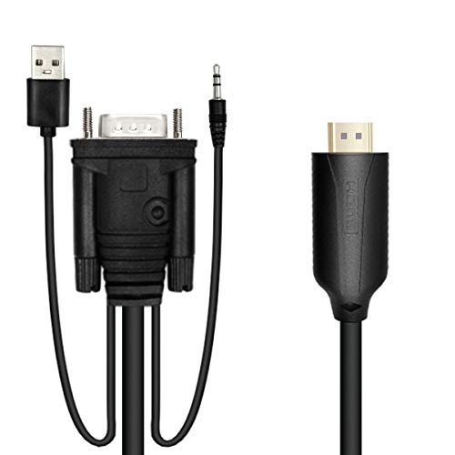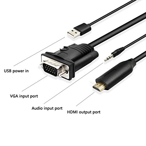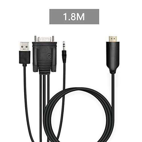 1.8m Male VGA to Male HDMI Converter Adapter cablewith 1080P HD Video Converter Cord with 3.5mm Audio Cable & USB Power Cable for Old PC to New TV/Monitor/Projector