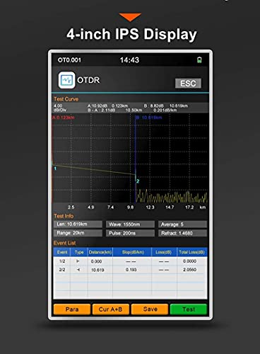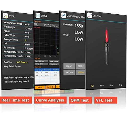 - 4 in 1 Multi-Function Tester -- OTDR: 1310/1550nm, 22/20dB, 0-60km; VFL: 10 KM Range; OPM: -70~+10dBm; OLS: 1310/1550nm; it is a cost-effective yet powerful multi-functional optic cable tester