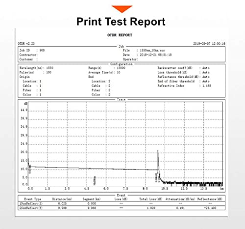 - Processing Test Data -- can upload to PC via USB port, further analysis or processing can be done via management software. Or you can save it as .sor format file or print in batch. Report include test condition, test curves, link loss, average loss, etc