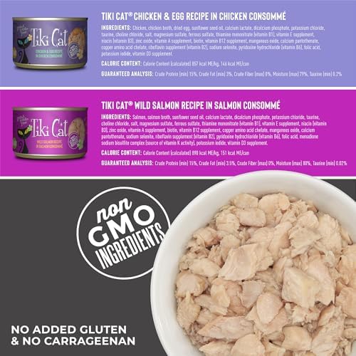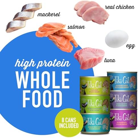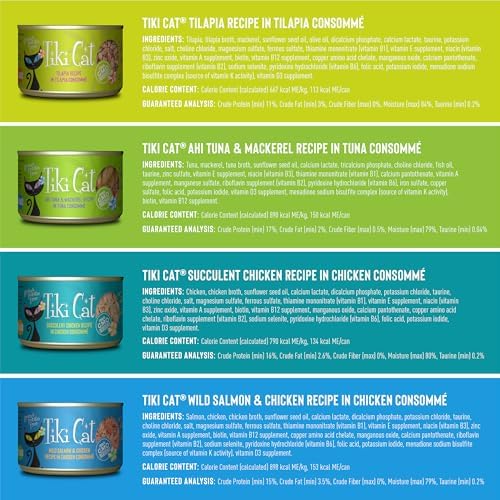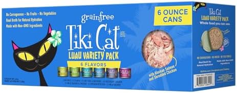 Tiki Cat Luau Variety Pack, Succulent Combinations of Real Shredded Protein in a Rich Flavorful Consumme, Grain-Free Balanced Nutrition Wet Canned Cat Food, for All Life Stages, 6 oz. Can (8 Count)