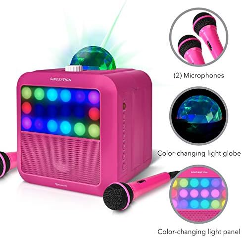 Singsation Star Burst Portable Karaoke Machine, Bluetooth, Room-Filling Light Show with 10 Light Functions, 6 Amazing Sound Effects, 2 Microphones Included for Duets, Pink
