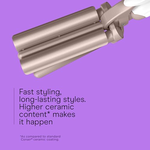 Rizador doble de cerámica Conair de 3 cilindros, ondulado para el cabello, crea ondas playeras, ondas apretadas naturales de larga duración para todos los largos de cabello