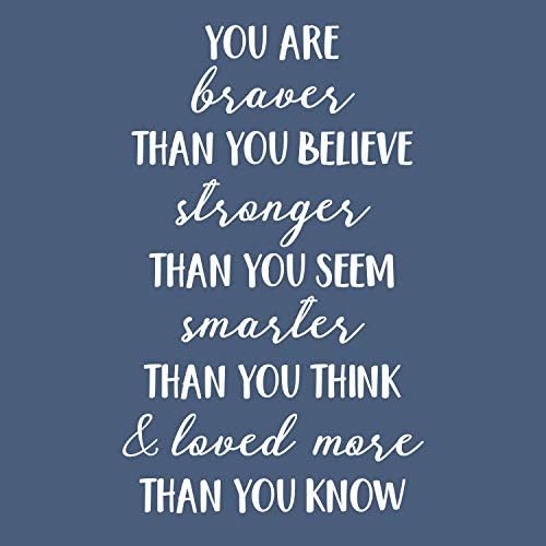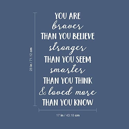 Vinyl Wall Art Decal - You are Braver Than You Believe - 28" x 17" - Inspirational Positive Self Esteem Quote for Home Bedroom Living Room Office Workplace Classroom Indoor Decoration (White)