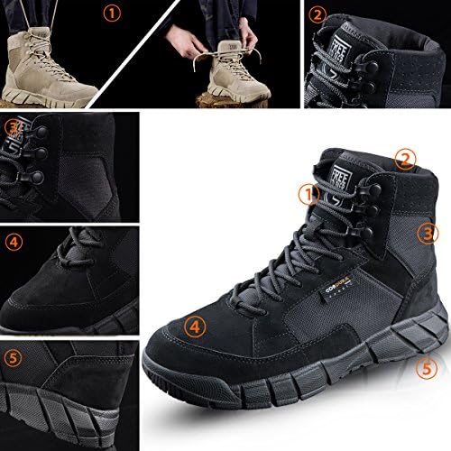 FREE SOLDIER Men's Tactical Boots 6 Inches Lightweight Military Boots for Hiking Work Boots Breathable Desert Boots (Black, 10)