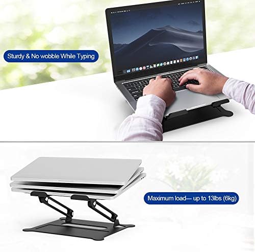 - Stable And Protective: This adjustable laptop stand is made of premium Aluminum alloy, it is sturdy, support up to 13 lbs(6kg), no worry any wobble at all; the rubber on the holder hands sticks tightly, ensure your laptop stable on the stand and prevent any scratches.