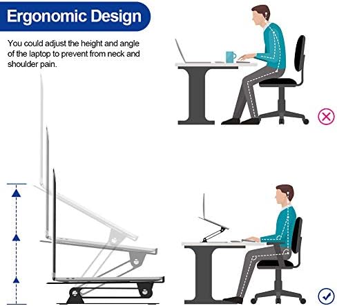 - Ergonomic Design: This LS05 Laptop Stand could be adjustable in height and angle of your laptop for your better ergonomics to minimize neck fatigue, say goodbye to neck pains. No tools needed for adjustment, just a push or a pull depending upon if you want it to go up or down.