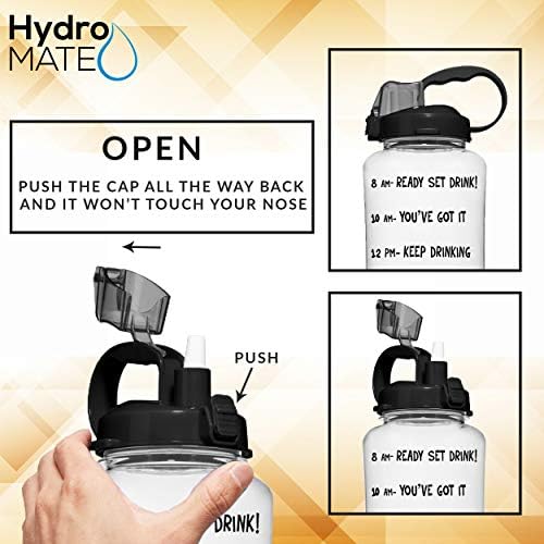 HydroMATE 50oz Motivational Water Bottle with Time Marker Large BPA Free Jug with Straw & Handle Reusable Leak Proof Bottle Time Marked Drink More Water Daily Hydro MATE - 1.5 Liter Neon Pink