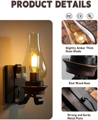 - Retro Design: Vintage kerosene lamp shape/ chimney glass sconces design brings a vintage atmosphere to your home. Metal lamp body with matte black finishand and glass lampshade brings country style to your room.