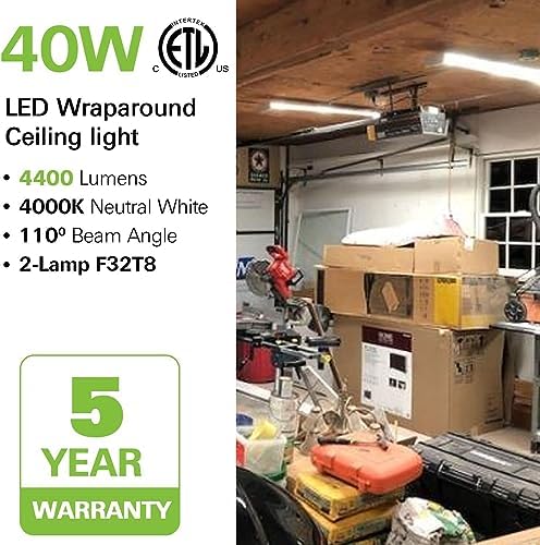 hykolity 4 Pack 4FT LED Wraparound Light 40W 4 Foot LED Shop Lights for Garage, [2-lamp 32W Fluorescent Equiv.] 4400lm 4000K Wrap Light, Flushmount Office Ceiling Light Fixture ETL Listed