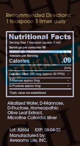 Silver GlucoPlus is a true silver hydrosol featuring 30 ppm colloidal silver suspended in an alkaline water base, and is also the first-ever formula to feature colloidal silver bonded to D-Manose and D-Fructose. 16 oz BPA-Free bottle Ingredients: Alkalized Water, D-Manose, D-Fructose, Colloidal Silver 30 PPM. Approximately 96 1-tsp servings per bottle