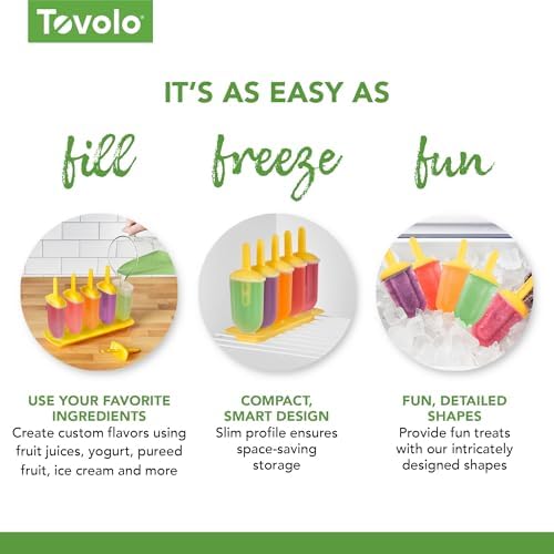 • Mess-Free Frozen Pop Treats: Make fun, delicious frozen treats with this Tovolo Pop Mold Set, including 5 classic-shaped molds and a storage base. Each mold features drip guards and long handles for easy use, perfect for kids and adults to enjoy mess-free treats.