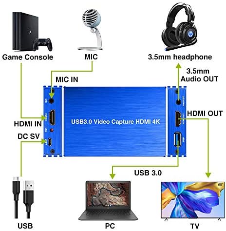 PUTELTAL 4K HDMI to USB 3.0 Video Capture Card Dongle 1080P Full HD Video Recorder for OBS Gaming Live Streaming HD Capture Box for PS3 PS4 Xbox Wii U & More