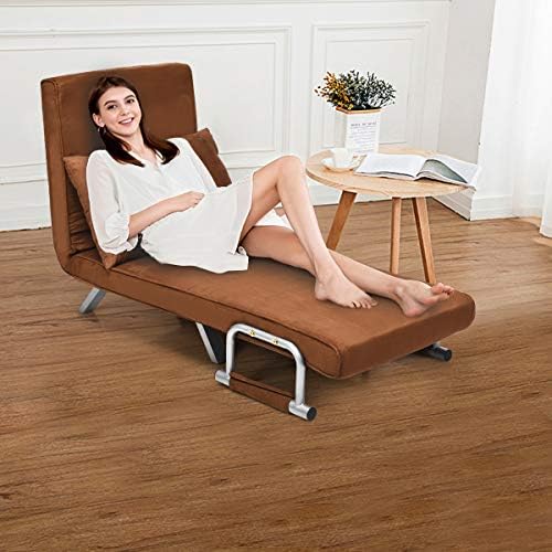 Giantex Convertible Sofa Bed Folding Arm Chair Sleeper with Pillow, Best Chamois Cover-Soft to Touch, 5 Positions Adjustable, 2 in 1 Armrest w/Steel Frame Recliner Padded Lounger Couch Bed (Brown)