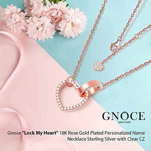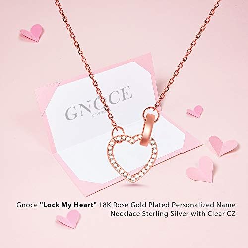 GNOCE Personalized Name Necklace Sterling Silver Lock My Heart 18K Rose Gold Plated Heart Pendant Necklace with Czs Adjustable Chain Christmas Jewelry Gift for Women