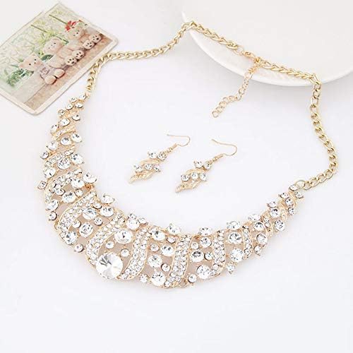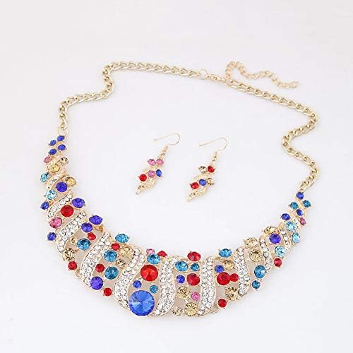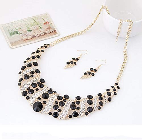 Valentine's Day present Women Rhinestone Spiral Bib Necklace Hook Earrings Statement Party Jewelry Set