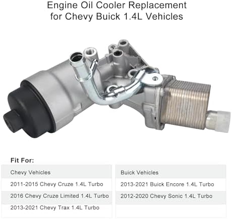 • Reemplazo directo de enfriador de aceite de motor compatible con Chevrolet Cruze 1.4T, Buick Encore 1.4L 2013-2020, Chevy Cruze 1.4L 2011-2015, Chevy Cruze Limited 1.4L 2016, Chevy Sonic 1.4L 2012-2020, Chevy Trax 1.4L 2015-2020.