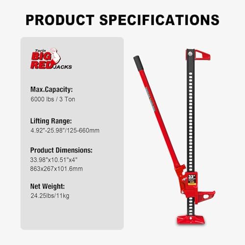 Torin TRA8335 33" Ratcheting Off Road Utility Farm Jack, 3 Ton (6,000 lb) Capacity, Red