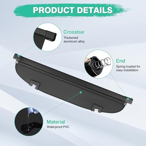 - Material Premium: Hecha de una aleación de aluminio de alta calidad y PVC impermeable con textura de lona, la cubierta del maletero garantiza un rendimiento duradero. Los extremos de la barra de extensión están biselados y pulidos, no rayarán el interior de tu coche. Las cabezas retráctiles de la barra principal están cubiertas con suela, protegen el interior y no harán ruido ni resonarán.