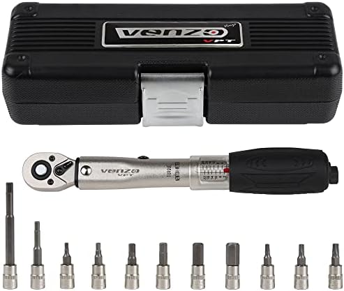 Juego de llaves dinamométricas Venzo Drive Click de 1/4 de pulgada, kit de mantenimiento de bicicletas de 2-22 Nm para bicicletas de carretera y montaña, multiherramienta para motocicletas, incluye enchufes Allen y Torx, barra de extensión de 4 mm y 5 mm y almacenamiento