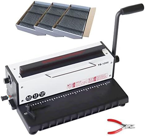 INTBUYING All Steel Metal Double Wire Coil 34 Holes 3:1 Punching &Binding Machine with 300 Sheets Spiral Coils, Electric Spiral Coil Inserter with Spiral Cutter