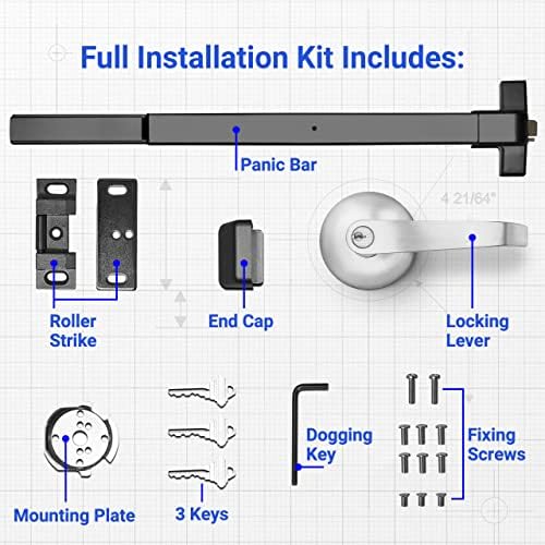 - Everything Included - Our complete assembly kit comes with a retractable dogging key, roller strike and shim, fixing screws, thru bolts, and three security keys.