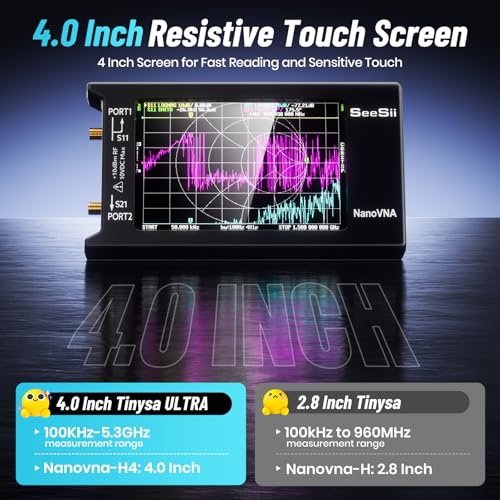 • UPGRADED NANOVNA ANALYZER: SeeSii Nanovna-h4 Vector Network Analyzer is developed by Hugen. With the latest 4.4 version,9KHz-1.5GHz measure range,4.0 inch LCD touchscreen, mini and portable design. This Antenna Analyzer is provides outstanding vector network measurement capabilities and perfect for evaluating antenna resonance and SWR. It is a very handy & smart analyzer for electronics engineers, amateur radio operators, or radio diy amateurs
