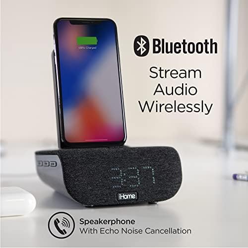 iHome Alarm Clock with Wireless Charging, USB Charging, and Bluetooth Speaker, Digital Alarm Clock for Bedroom, Home Office, or Dorm (IBTW20BX)