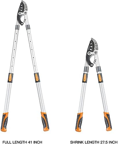 - Loppers Heavy Duty: Telescoping aluminum handle with 6-step telescoping design, adjustable from 27-41 inches.