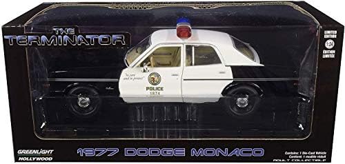 Greenlight 1977 Dodge Monaco Metropolitan Policía Metropolitana Negra y Blanca The Terminator (1984) Película Coche Modelo de Diecast 1/24
