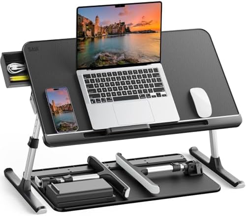 - [Foldable] Saiji laptop bed tray desk light but sturdy, folds flat for space-saving storage and portability. Executive oiffice Solutions, set up your laptop or writing work station anywhere in your home or office.