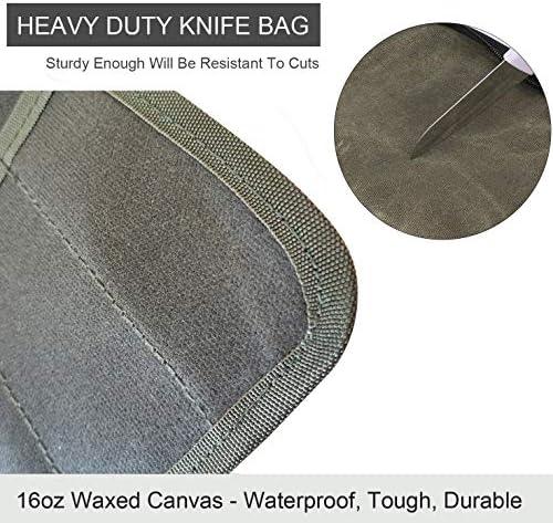 - HIGH QUALITY CHEF KNIFE CASE – Heavy Duty Cut And Puncture Resistant Waterproof 16oz Waxed Canvas Main Body, 1 Durable Zipper Clouser, Two Secure Buckles , Rigorously Tested Accessories Won't Scratch Tool Or Work Surface And They Won’t Scratch, Nick Or Damage Your Knives, Tough, Yet Flexible.