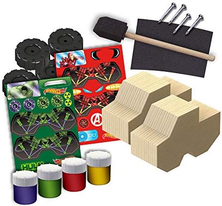 Construye y personaliza tus propios autos de carreras de madera Hot Wheels. Cada artículo incluye 2 personajes de Marvel para que diseñes y crees. Una vez creados, corre para ver qué superhéroe gana.