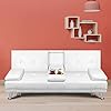 Walsunny Modern Faux Leather Sofa, Folding Reclining Sofa, Double arms, Living Room Bedroom Sofa Chair (White)