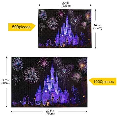 Castle with Firework Jigsaw Puzzle 500 Piece, Dream Castle Puzzle for Adults Kids DIY Gift