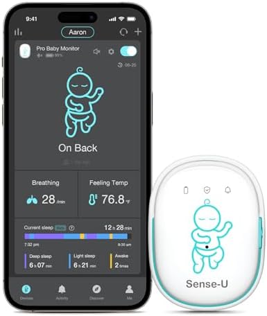 Monitor de Movimientos del Bebé Sense-U Pro con Vibración de Alerta, Alertas de Movimiento/Revolcamiento/Sobrepoblación, Notificaciones Audibles y de Aplicación, Diseño Fácil de Sujetar, Monitor de Sueño Inteligente, Apto para FSA/HSA