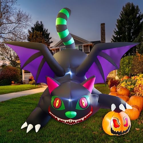 • GREAT FOR FESTIVAL: 8 Ft Halloween Inflatables Black Cat with Wings and Pumpkin perfect for halloween decor. Will add fun and color to your halloween and welcome your lovely neighbors